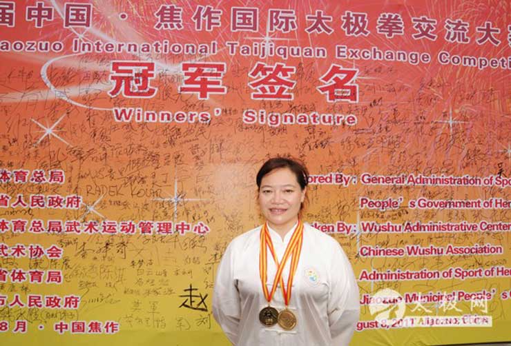 曾加华,女,获太极拳金牌 、太极剑金牌